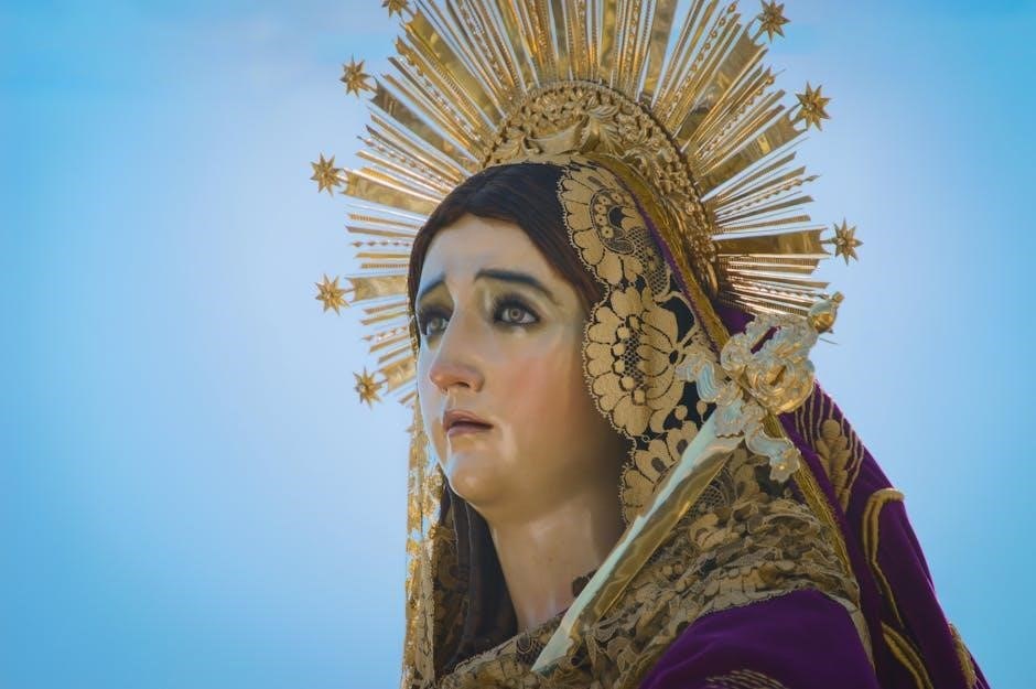 Furthermore, the Chaplet of the Seven Sorrows offers a meditative prayer experience, focusing on each of Mary’s sorrows with specific prayers and invocations. Many Catholic websites and prayer books provide these resources, often available as downloadable PDFs for convenient access.