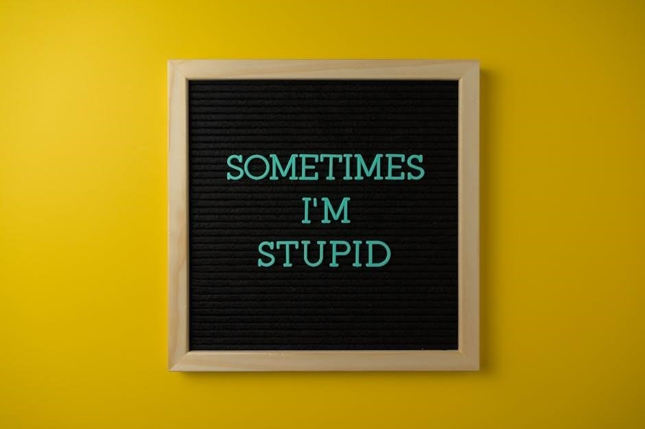 Philosophically‚ “stupidity” in the context of the bird explores the limits of reasoning and understanding. It reflects the tension between rational thought and irrational behavior‚ mirroring existential ideas of human fallibility. The term challenges Cartesian notions of thinking as the essence of being‚ suggesting that even with the capacity for thought‚ individuals may act counter to logic. This duality highlights the paradox of human intelligence—capable of profound insight yet prone to foolishness. The bird’s “stupidity” thus serves as a metaphor for the inherent contradictions in human cognition and the futility of absolute rationality in an uncertain world.